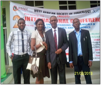 During the second international meeting of the WASOT (West Africa societies for Toxicological Sciences) at the University of Port Harcourt, River state on February 2013, Guy Pouokam gives a talk on the importance of networking and risk analysis for sustainable food safety in Africa. A poster presentation is also given, on new technology for field applications to support environmental and food chain safety. Both presentations were useful opportunity to animate debate on how the decision makings process can be fed with sound scientific arguments. Subsequently, Guy Pouokam gave some interviews for a local television station.